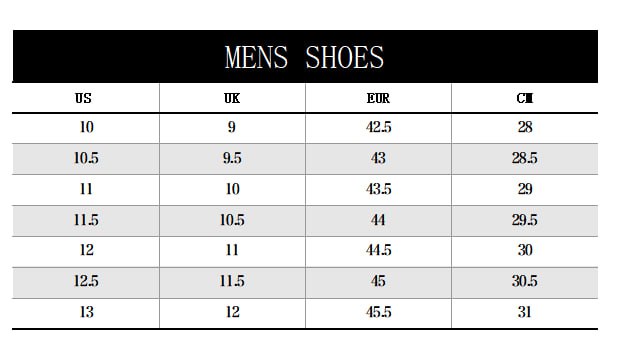 | Shoes-Size | 10, 10.5, 11, 11.5, 12, 12.5, 13 |